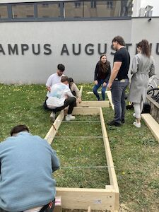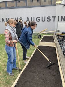 Im Rahmen der Nachhaltigkeitswoche wurde der Campus Augustinum um ein sichtbares und lebendiges Zeichen bereichert: Studierende des 4. Semesters haben mit großem Engagement zwei neue Randbeete angelegt. Unter der fachkundigen Anleitung und nach den Bauplänen von Herrn Glatz entstand in echter Teamarbeit ein nachhaltiges Projekt, das nicht nur den Campus verschönert, sondern auch zum Weiterdenken anregt.